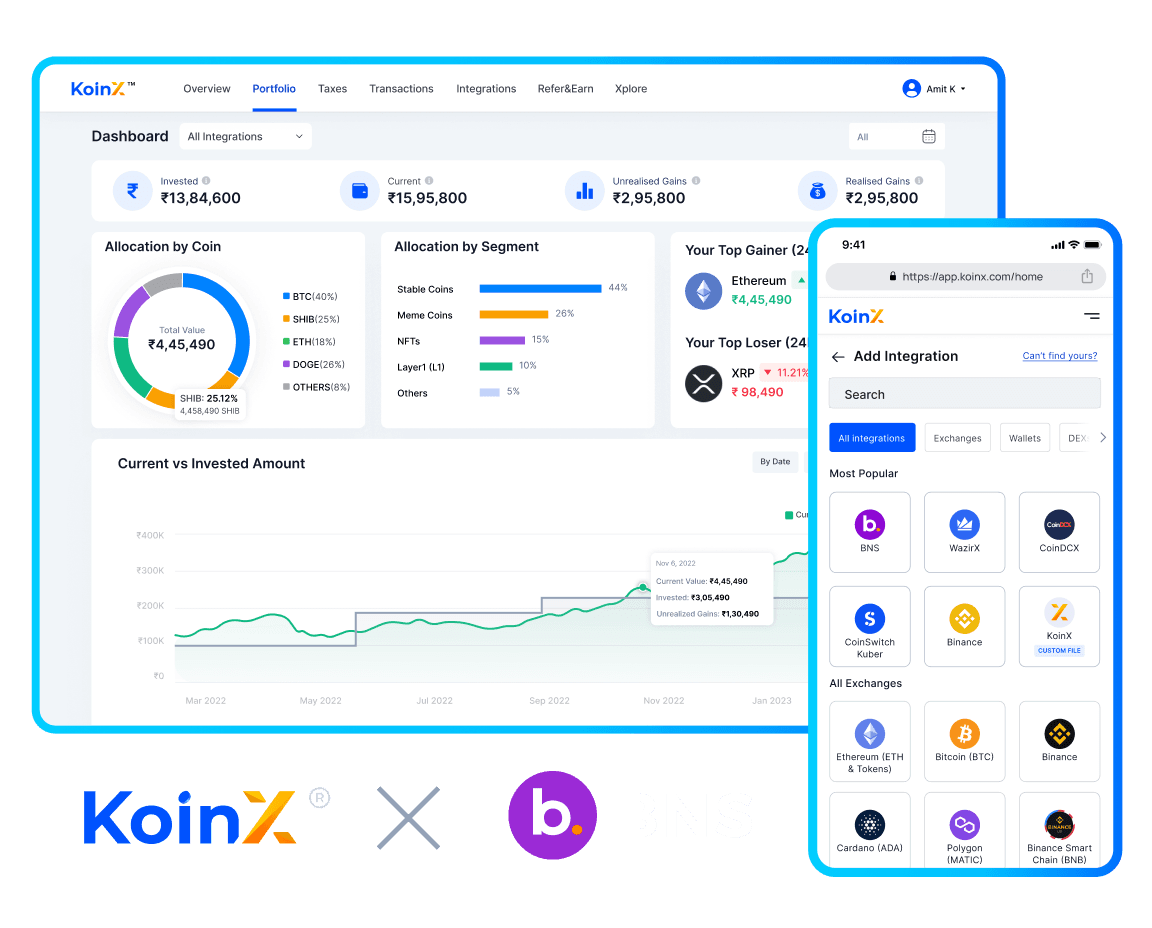 Join NowKoinX simplifies crypto tax calculations by effortlessly syncing your transactions from BitBNS and 270+ major exchanges and wallets.