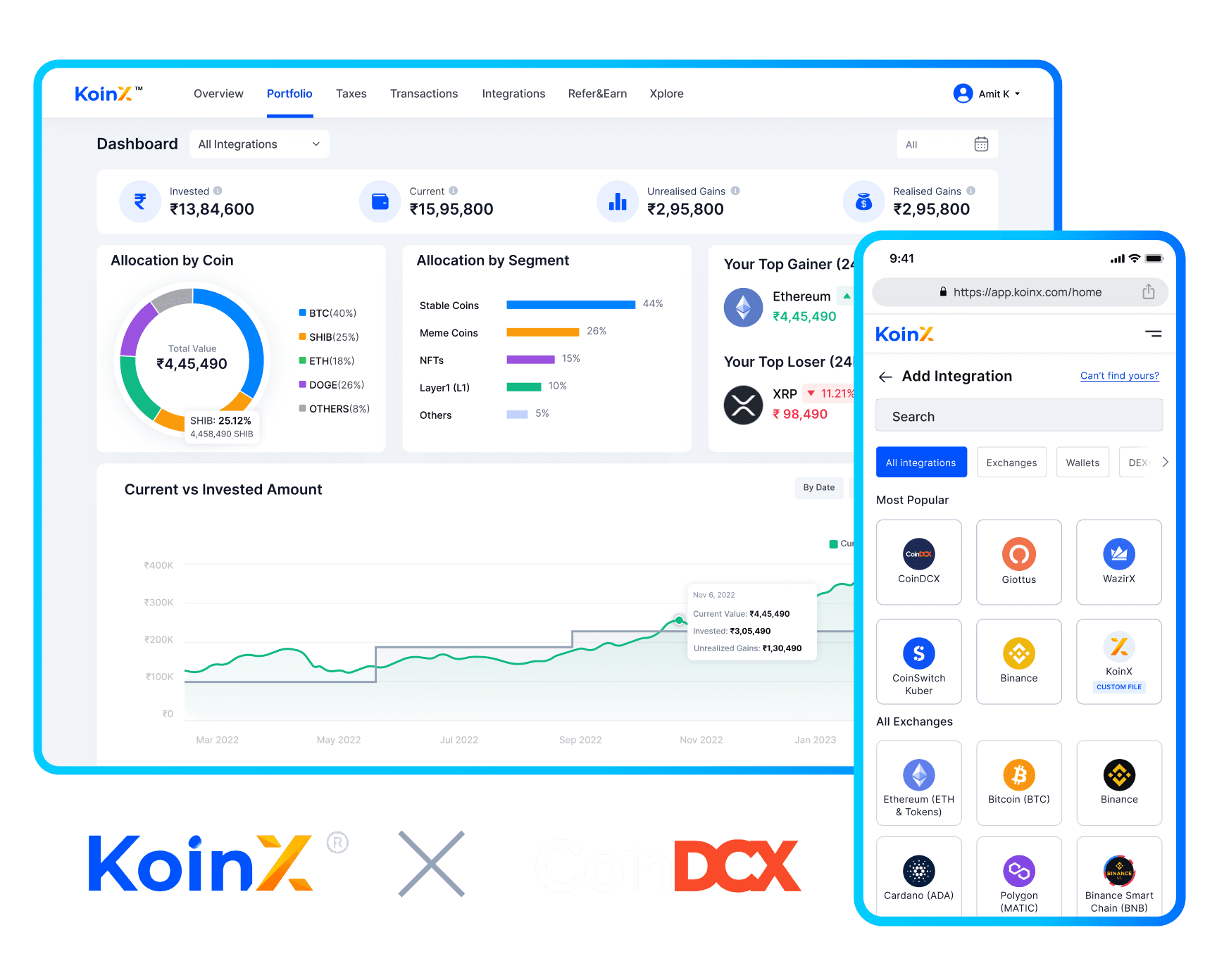 Check out this detailed blog to learn how to integrate your CoinDCX account with KoinX.